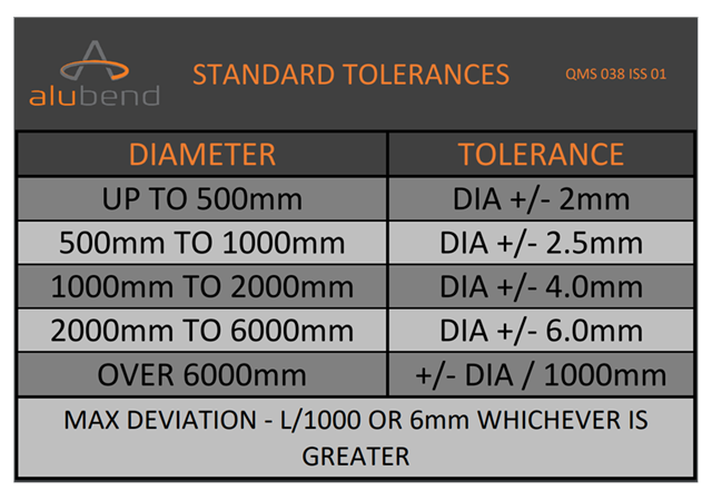 These are our standard Aluminium Section Bending tolerances: